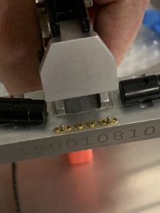 1. Next, take a splicing rivet and place it in your crimping tool. This rivet will be used to hold the two pieces of tape together.